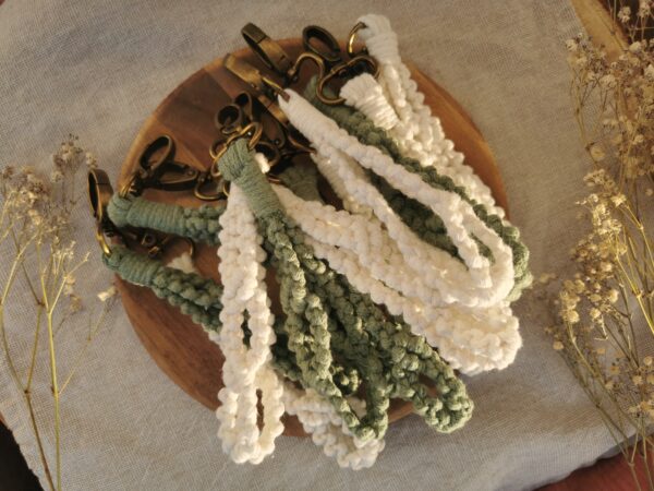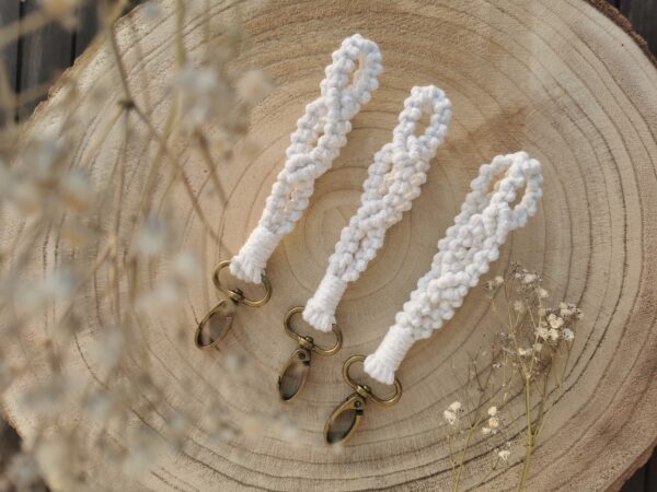 Ayez toujours vos clés à portée de main grâce à notre modèle de porte-clés en macramé doté d’une anse, idéal à passer à votre poignet.